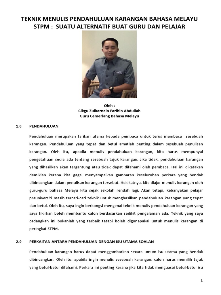 Teknik Menulis Pendahuluan Karangan Bahasa Melayu Stpm Pdf
